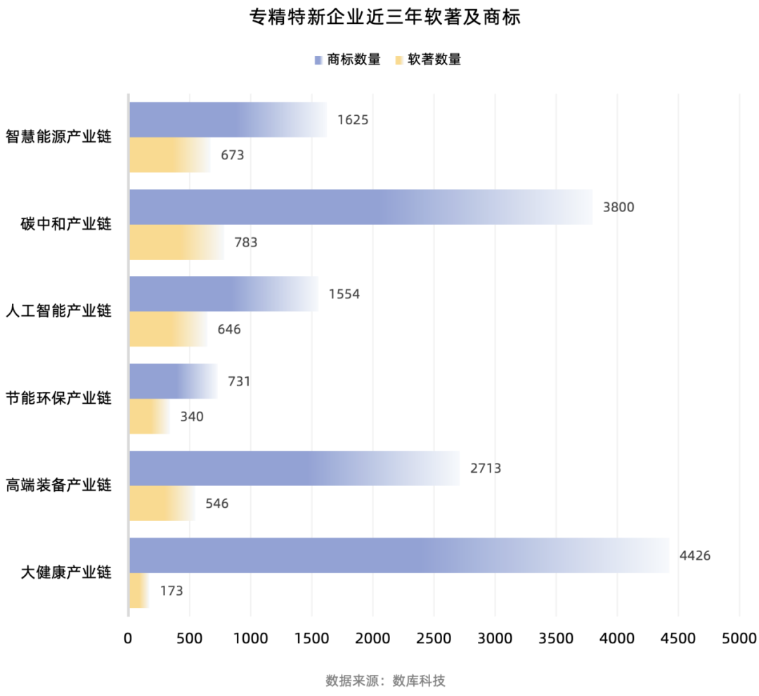 六大產(chǎn)業(yè)鏈上專(zhuān)精特新企業(yè)軟著及商標(biāo)統(tǒng)計(jì)
