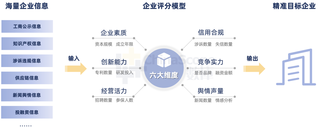 最后,在落地應(yīng)用上,為挖掘及培育具有潛力的潛在專(zhuān)精特新企業(yè),數(shù)庫(kù)科技對(duì)細(xì)分產(chǎn)業(yè)進(jìn)行景氣度評(píng)價(jià),在中觀(guān)上對(duì)產(chǎn)業(yè)進(jìn)行量化評(píng)價(jià)并篩選出優(yōu)質(zhì)企業(yè)。進(jìn)而,基于企業(yè)規(guī)模、穩(wěn)定、成長(zhǎng)、財(cái)稅、履約、創(chuàng)新六大維度100項(xiàng)指標(biāo),對(duì)目標(biāo)企業(yè)進(jìn)行多維度評(píng)估,綜合構(gòu)建企業(yè)評(píng)價(jià)模型。企業(yè)評(píng)分模型是一個(gè)預(yù)訓(xùn)練模型,在實(shí)際應(yīng)用過(guò)程中可以根據(jù)具體的評(píng)價(jià)側(cè)重點(diǎn)進(jìn)行動(dòng)態(tài)配置。例如,在企業(yè)初篩階段,可以負(fù)面指標(biāo)作為訓(xùn)練目標(biāo),剔除不具潛力的企業(yè)。在精選階段,可與現(xiàn)有專(zhuān)精特新企業(yè)的特征構(gòu)建AutoEncoder模型,篩選出精選企業(yè)。