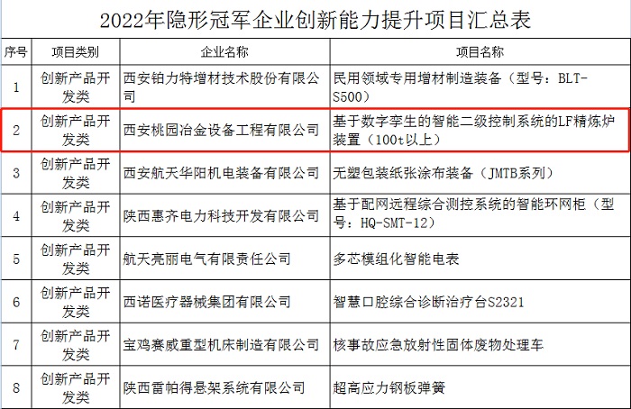 “2022年陜西省隱形冠軍企業(yè)”、“陜西省制造業(yè)單項冠軍企業(yè)”這兩項殊榮,是政府部門對桃園公司在細分領域內(nèi)綜合實力的認可;是桃園公司科技創(chuàng)新持續(xù)化、產(chǎn)品經(jīng)營專業(yè)化、市場開拓全球化的充分體現(xiàn);有力證明了桃園公司在業(yè)內(nèi)的領軍地位。